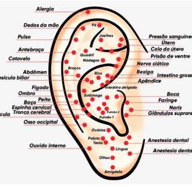 A Auriculoterapia é uma técnica que utiliza a orelha como um microssistema (mapa corporal) para diagnosticar e tratar várias condições de desequilíbrio físico e/ou emocional, através do uso de agulhas, cristais ou sementes de mostarda para estimulação de pontos cutâneos específicos no pavilhão auricular.